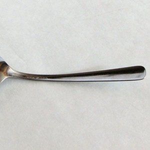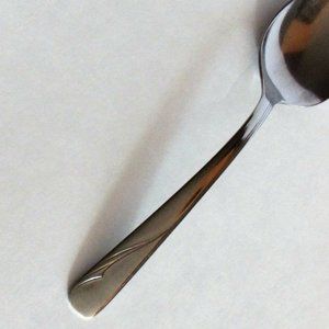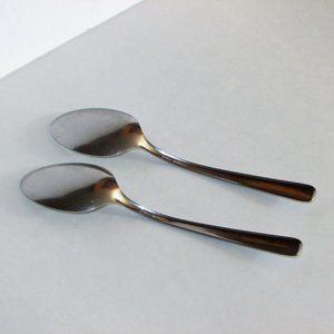 Lot of two Table/Serving spoons, 8" long. This pattern features wavy lines on glossy handle.