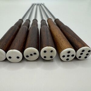 Oneida Stainless Steel Teak Wood Handled Fondue Forks with Gaming Dice Numerals.