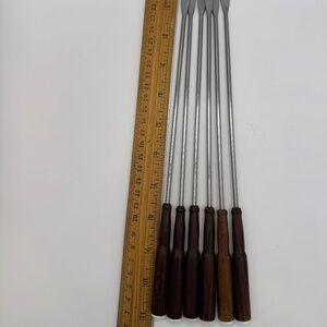 Here is a set of 6 mid century modern teak handled fondue forks made by Oneida.