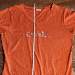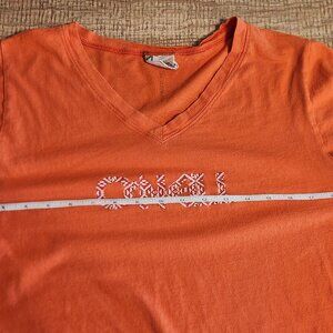 Super cute orange Oneill tee from pet and smoke free home. Tags removed but fits size large. Please see pictures for measurements. 100% Cotton. GUC.