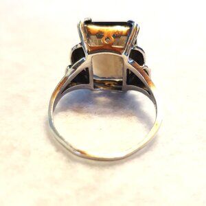 Step into timeless elegance with this extraordinary vintage Art Deco statement ring, featuring a large genuine Smoky Quartz set in beautifully detailed 925 sterling silver.