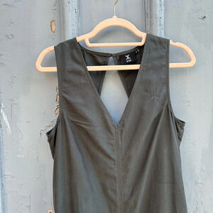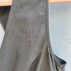 Zippered pockets, back cut out detail, elastic ankle detail.