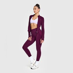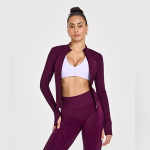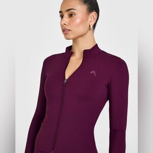 Elegant zip-up jacket in deep purple. Ideal for active or casual wear.