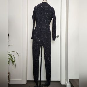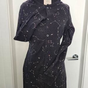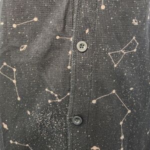 Black Waffle Knit Long Sleeve Vneck Longjohn Onesie Pajamas with speckled Galaxy Star chart Constellation Print, by Arborist from Drake General Store.