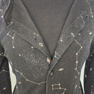 Black Waffle Knit Long Sleeve Vneck Longjohn Onesie Pajamas with speckled Galaxy Star chart Constellation Print, by Arborist from Drake General Store.