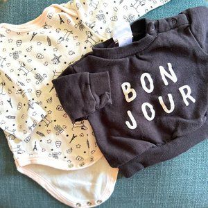 selling together - this onesie and sweatshirt with French motif. Sweet and simple.