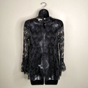 Onetheland Y2K Whismigoth Renaissance Victorian Dark Fairy Lace Mesh Witch Top S
