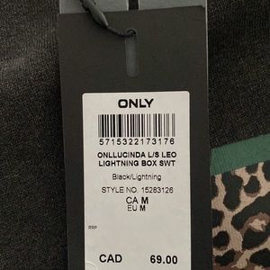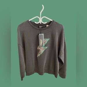 Fashion long sleeve crewneck sweatshirt. Light fleece lining on inside, graphic print on front. No zippers, buttons or pockets. Has good amount of stretch. Brand NWT. Pit to pit measures 24” w/o stretching.
