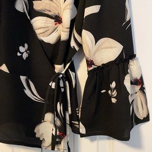Black ONLY Blouse with a wrap around tie and flared sleeves
