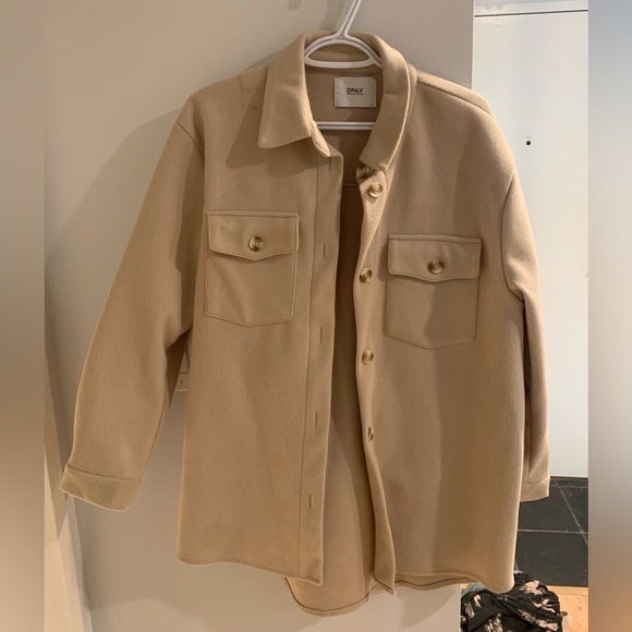 Only shacket in oatmeal. Sz M, fits oversized. Small mark on right shoulder, as pictured.