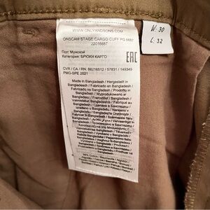 Only & Sons Men’s Tan Cargo Jogger Pants W30 L32