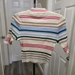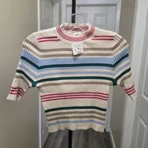 ONLY Striped Ribbed Knit Short Sleeve Top Multicolor Slim Fit Stretch Casual NWT