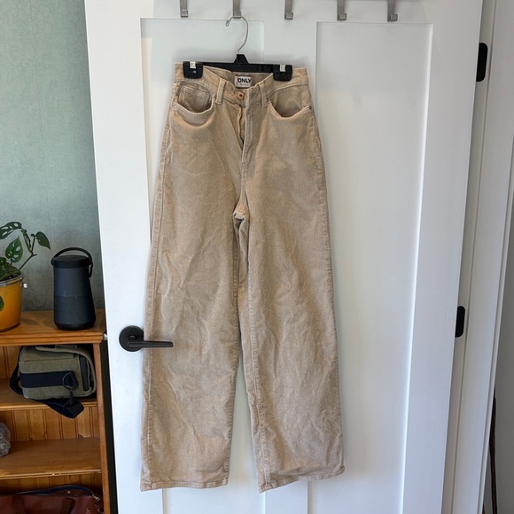 Stylish boot cut pants by Only. Features a classic tan color. Perfect for casual wear.