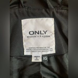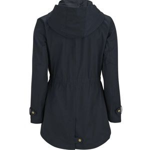 Lightweight hooded jacket from ONLY. The cotton blend construction has a nylon outer for showerproof protection. A full front zip fasten with press stud fasten overlay forms the design, which also comprises a large hood with strap across the neck for additional warmth and protection against the elements. An elasticated waist cinches in the waist to create a flattering silhouette. Two flap pockets with zip detail to the front and paspel chest pockets feature. Buttoned cuffs also feature. Finished with a single vent rear with accompanying buttoned strap fasten. - R.R.