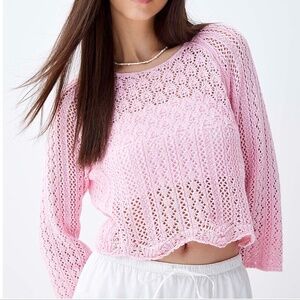 Only light pink openwork pointelle lace sweater NWT