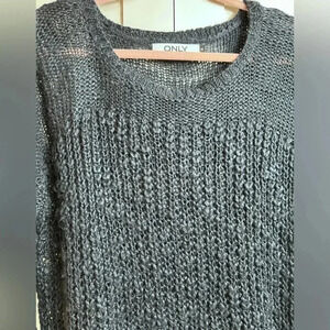 Only oversized chunky knit sweater, M navy, sheer sleeves Preppy Coastal Classic