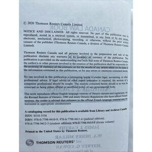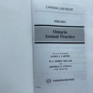 Dive into the comprehensive realm of Canadian law with the "Ontario Annual Practice 2020-2021" textbook, a must-have for legal professionals and students. Authored by the esteemed James Carthy, Jeffrey G. Cowan, and W.A. Derry Millar, and published by Thomson Reuters, this hardcover edition is an invaluable resource for understanding the intricacies of Ontario's legal system.