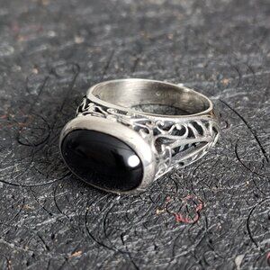 Onyx 925 sterling silver ring - size 7.5 OPENWORK