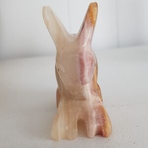 Precious stone carved bunny with beautiful colors. One of a kind handcarved and polished gemstone animal figurine.