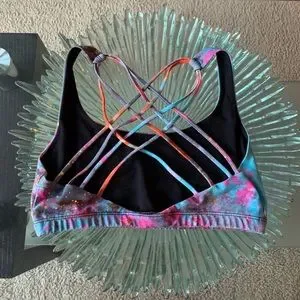 Vibrant sports bra with a splash of colors. Comfortable fit. Ideal for active wear.