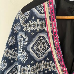 Oober Swank Navy Pink Patterned Open Blazer Jacket
