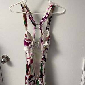 Long prom dress with open back. Silk material and worn once.