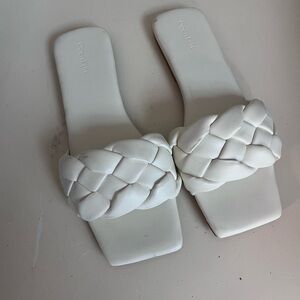 Elevate your look with Open Edit's white braided sandals. These stylish sandals offer a chic and comfortable fit for any occasion.