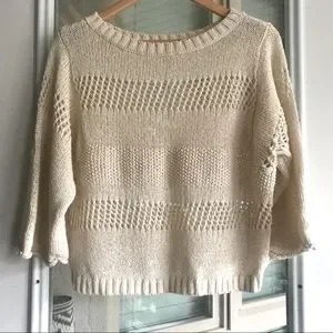 Lightweight, soft open knit crochet sweater with 3/4 length sleeves