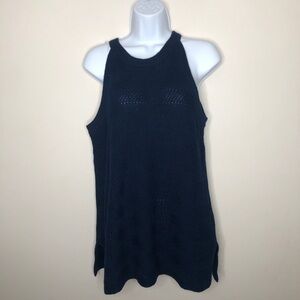 Open Knit Sweater Jewel Neck Tank Size Large In Navy Blue
