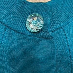 pretty teal women's open cardi with a stylish bling snap button. Mid weight knit with Pointelle stitch pattern. 3/4 sleeves. True colour in measurement pic. . Like new.