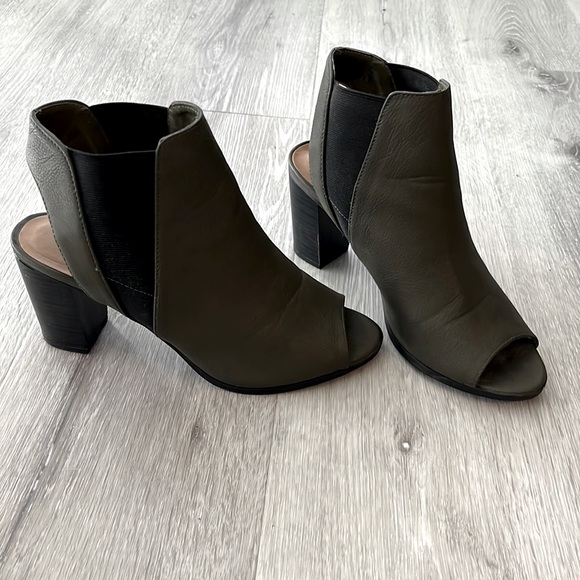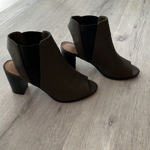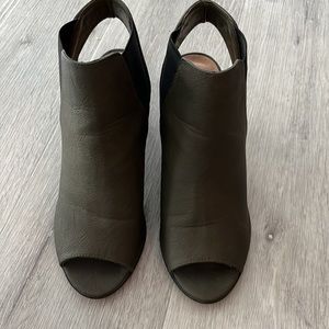 Call It Spring high heeled booties with open toe. Worn once. Army Green.