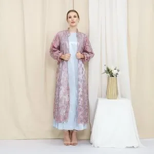 Open Wrap Cardigan Material : Brocade with sequins Colour : light purple Size : All Size Lenght : Below the Knee Limitted edition