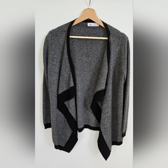 B.L. Fashion. Size small. Black, white and gray. Very cozy.