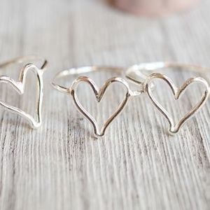 Unique sterling silver 16g (1.3mm ) thick wire custom sized. The heart is approximately 10mm across to the out side edge. I custom make all of my jewellery in my tiny studio located in historic Fort Langley BC and I do my best to have consistent style but with the irregular nature of handmade sometimes there are some slight variations from the photos.
