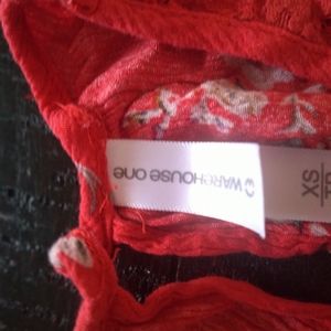 Womans open shoulder top very light material loose fitting back of short has small cutout at top perfect for office or formal wear. Beautiful orange color.