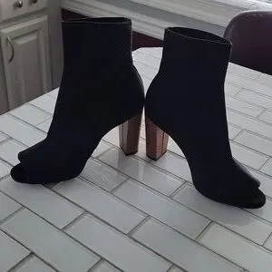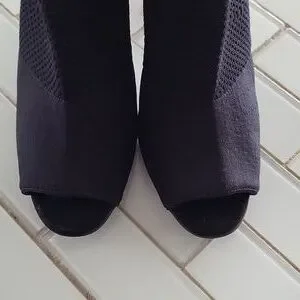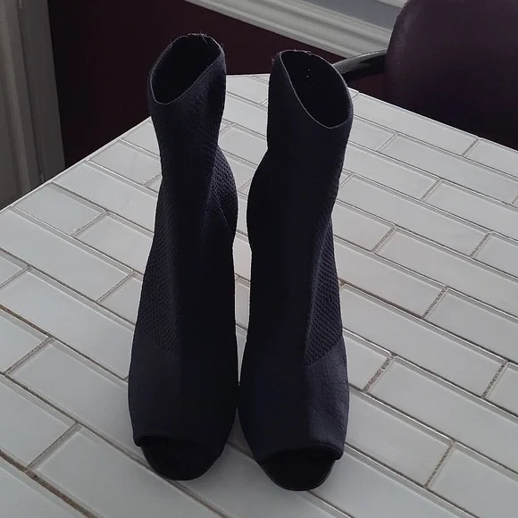 Pull on style, open toe in soft stretchable knit fabric. Stacked heel is 3.5 inches approx. Euc.The boot says U.S sz 7.
