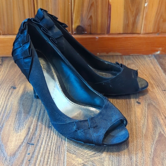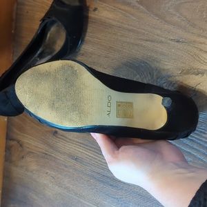 black aldo heels in good shape a few pulls in the pleading