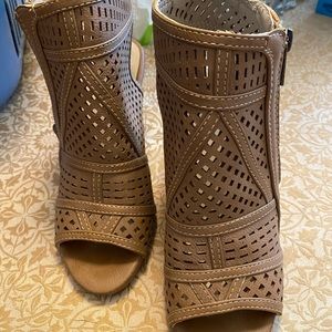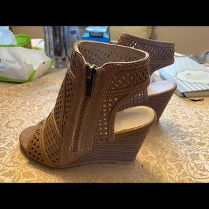 Etc! Brand tanned coloured open toed sandal Brand new, 2.5”-3” wedge heel