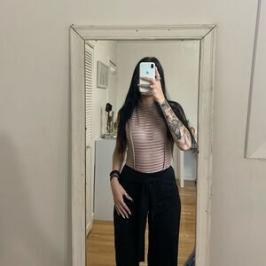 ⭐️Open back pink striped mesh bodysuit women’s medium