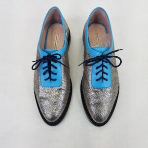 Opening Ceremony Oxfords Women's 9.5 EU 41 Blue Silver Glitter Lace Up Loafers
