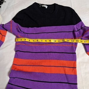 Purple, orange, and black striped knit sweater from opening ceremony.