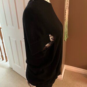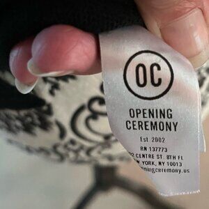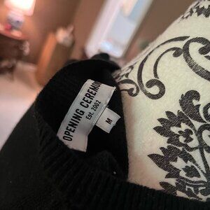 Beautiful Opening Ceremony black crew neck t-shirt in the following fabric: 35% nylon, 30% viscose, 30% wool, 5% cashmere. Lovely soft material - just heavier weight than a normal tee.