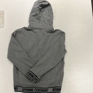 Oversized hoodie in Heather grey with branded cuffs and waistband. In excellent condition. Shoulder to shoulder 19.5”, pit to pit 22”, length 22”.