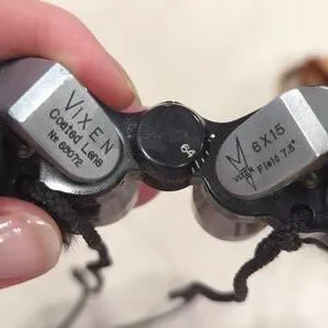 Labeled: "coated lens" and "no. 65072" and "6 x 15" and "Field 7.3°" Includes original leather case.