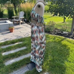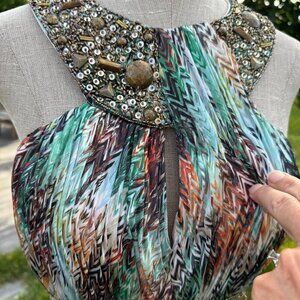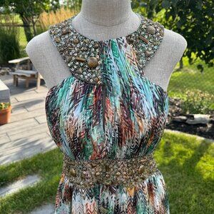 Opulence England Beaded Sequin Sleeveless Gown Cutout Halter Maxi Dress