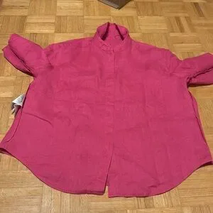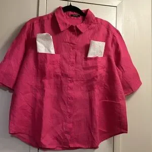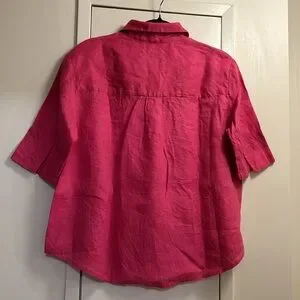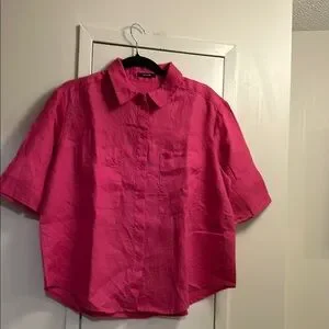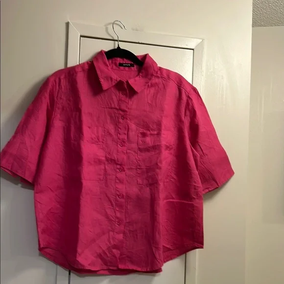 Vibrant pink button-up shirt with short sleeves. Perfect for casual wear. Colour close to actual on a first pic Ptp 22.5” L 23” hem across 24.5”(Approximately). 70euro