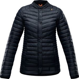 Long synthetic down jacket. Flattering cut, not boxy like many down jackets. Super warm, but not bulky.