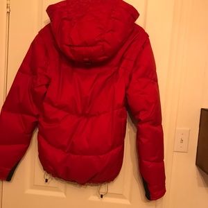 If you are looking for warmth then look no further. Here is a warm jacket for winter…check out this womens Orage ski/snow jacket with hood purchased in Banff, Alberta. It has barely been worn and slightly large on me now and so I’ve decided to list. It has all the creature comforts you need to stay warm on the slopes yet very stylish. You can convert into a vest as the sleeves can be removed in spring. Adjustable at the waist and storage pockets galore inside and out.