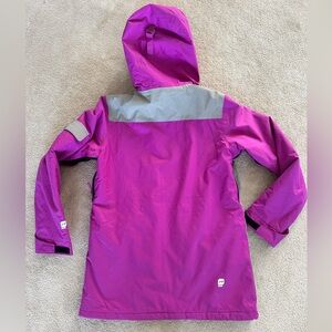 Orage ski/boarding jacket. Sz L. Pockets galore. Toggles to adjust. Powder skirt. Fun color. Perfect condition