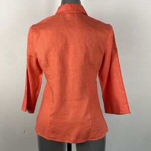 Orange 100% linen half sleeve breathable lightweight formal embroidered top sz M
